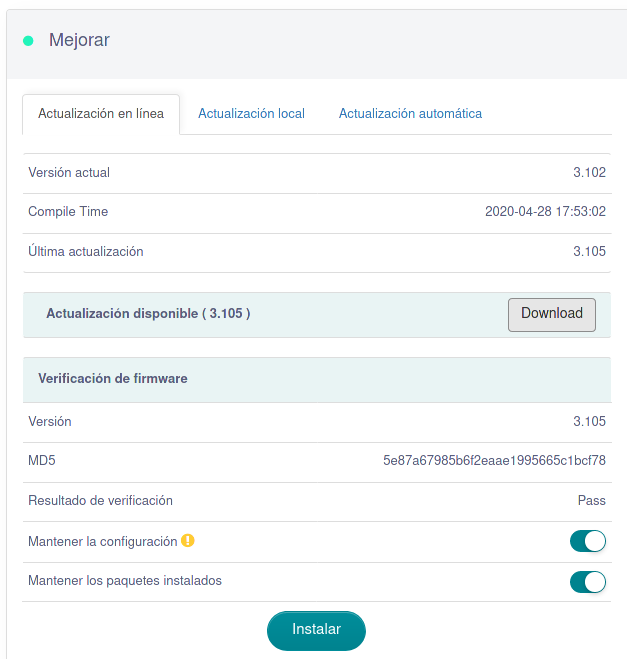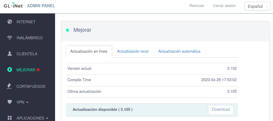 Al entrar por primera vez, nos permite elegir el idioma y establecer una contraseña para acceder al panel de control.