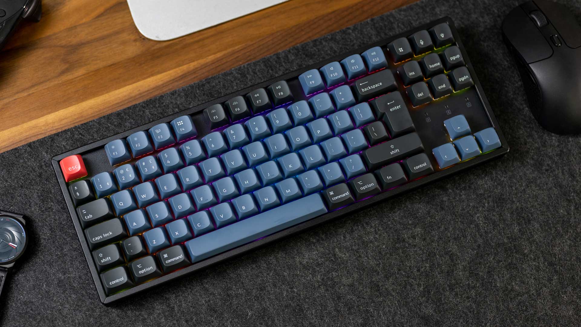 - Diseño compacto: Con un diseño de 80%, el K8 Pro ofrece un tamaño más reducido que los teclados tradicionales, liberando espacio en tu escritorio.