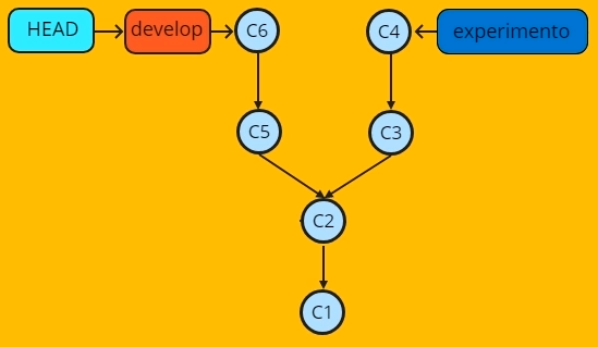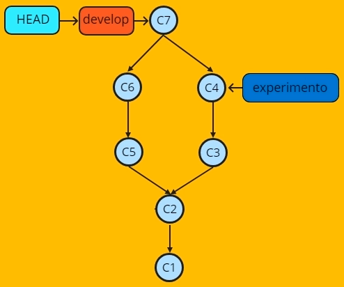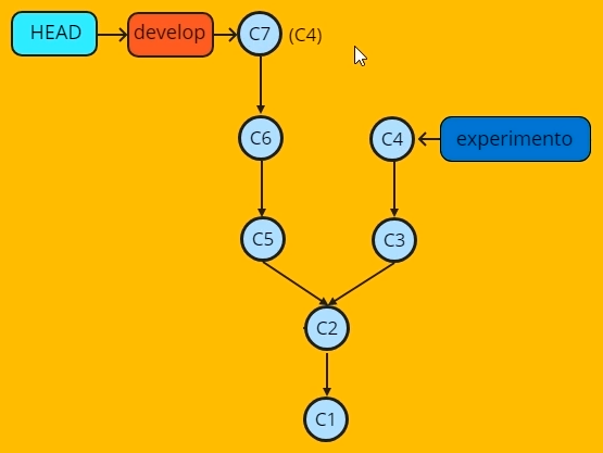 Si tenemos una rama principal llamada develop y una secundaria llamada experimento y esta segunda está más avanzada que la primera y la que queremos volcar en la primera:
