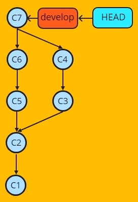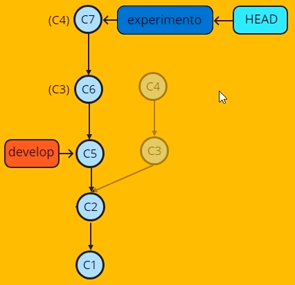 Después de un rebase tenemos que adelantar la rama principal (git branch -f develop).