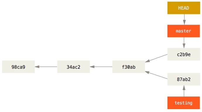 Recordamos que “estar en master” es que HEAD está apuntando a master (HEAD → master).