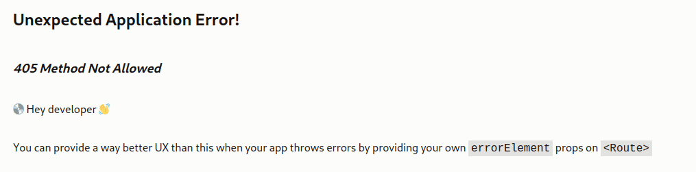 Lo ideal sería poder capturar el error y mostrar un mensaje más amigable dentro de la interfaz de nuestra aplicación. Para ello, utilizaremos una propiedad denominada errorElement donde las rutas aceptan un elemento que se mostrará en caso de que no se pueda mostrar el contenido solicitado u ocurra algún otro error.
