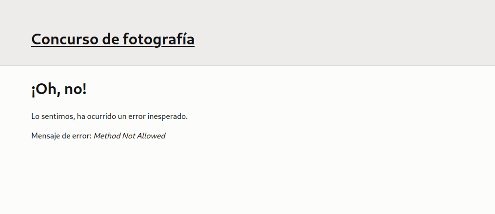 Por ahora, si tratas de votar una fotografía utilizando el formulario que hemos implementado, verás que se muestra un mensaje de error bastante poco atractivo: