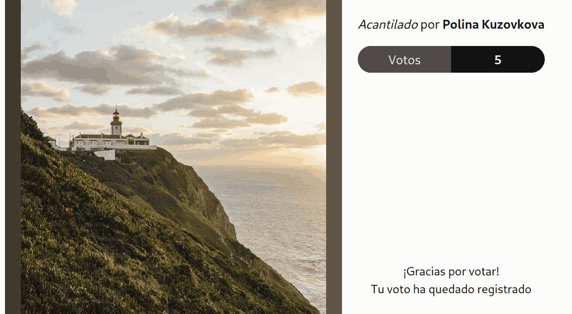Por último, la interfaz tras haber votado simplemente muestra un mensaje de confirmación y agradecimiento: