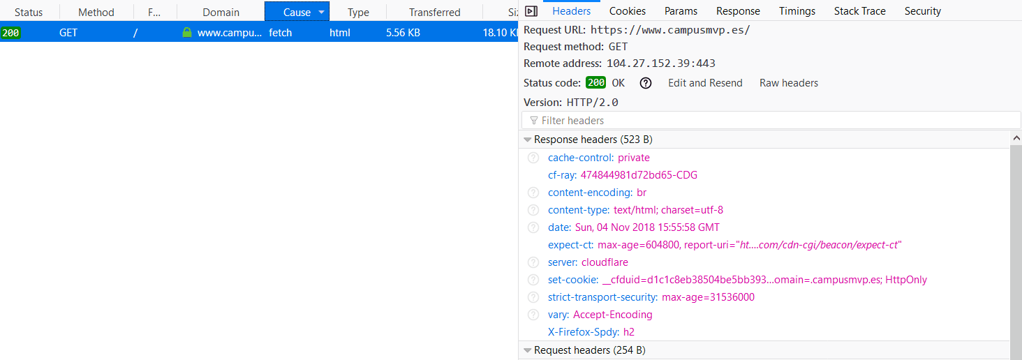 Puede sorprendernos que una página “moderna”, la web de CampusMVP, no soporte CORS, pero es algo bastante normal. Lo que ocurre es que la URL que estamos usando es la de una página web completa, y raras veces se carga vía AJAX una página web completa. Así que hay muchos servidores que no soportan CORS en URLs que son páginas web completas. Los servidores suelen soportar CORS en aquellos recursos que están pensados para ser usados vía AJAX, básicamente APIs REST.