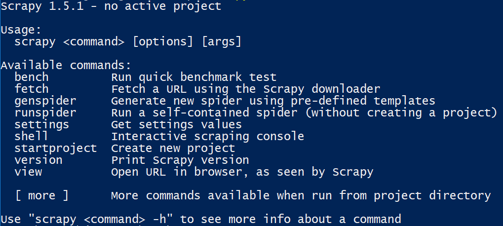 Una vez instalado, es posible usar el comando scrapy desde la línea de comando, usando subcomandos al mismo tiempo.