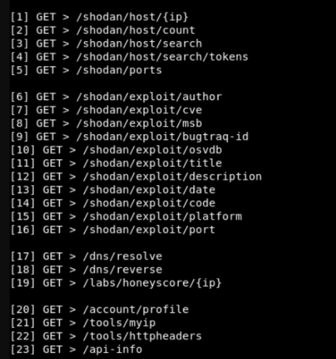 Shodan dispone también de un API REST para realizar peticiones a sus servicios: https://developer.shodan.io/api