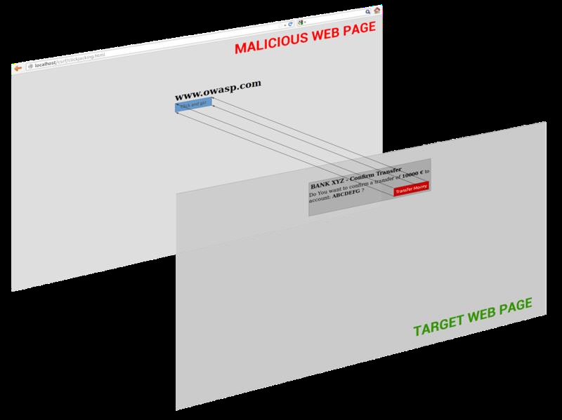 Superposición de un elemento iframe sobre otro con el fin de “capturar” el click del usuario sin que este sea consciente con el fin de provocar una acción no deseada por parte del usuario.