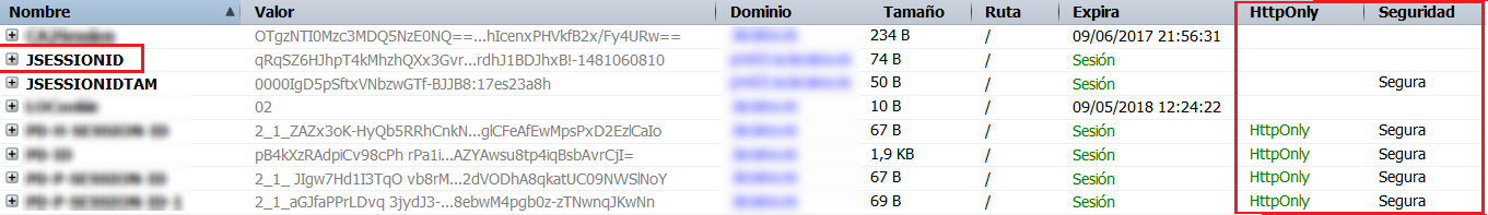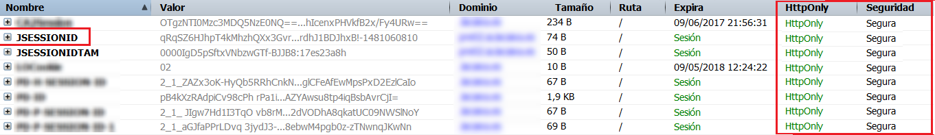 En la siguiente captura vemos como la cookie de sesión JSESSIONID no tiene ningún atributo de seguridad: