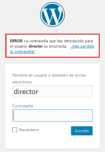 Este tipo de error en WordPress nos está indicando que existe el usuario director: