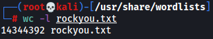 Un diccionario muy común es rockyou.txt, basado en un leak que presenta las contraseñas más utilizadas de usuarios: