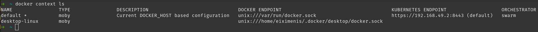 default: es el contexto que se instala “por defecto”, al instalar Docker Enginedesktop-linux: es el contexto que instala, en este caso, Docker Desktop for Linux.