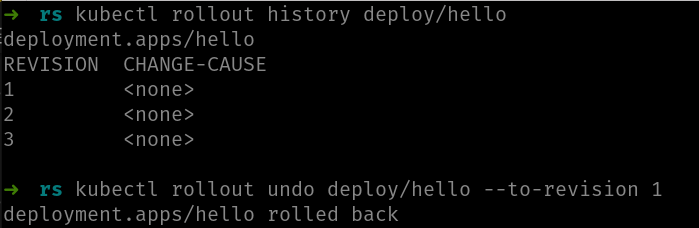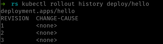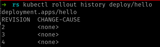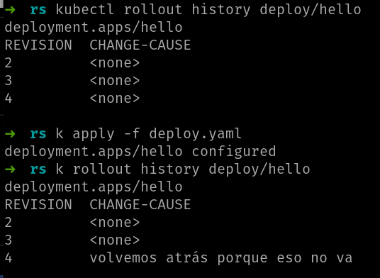 apiVersion: apps/v1 kind: Deployment metadata: name: hello annotations: kubernetes.io/change-cause: "volvemos atrás porque eso no va"