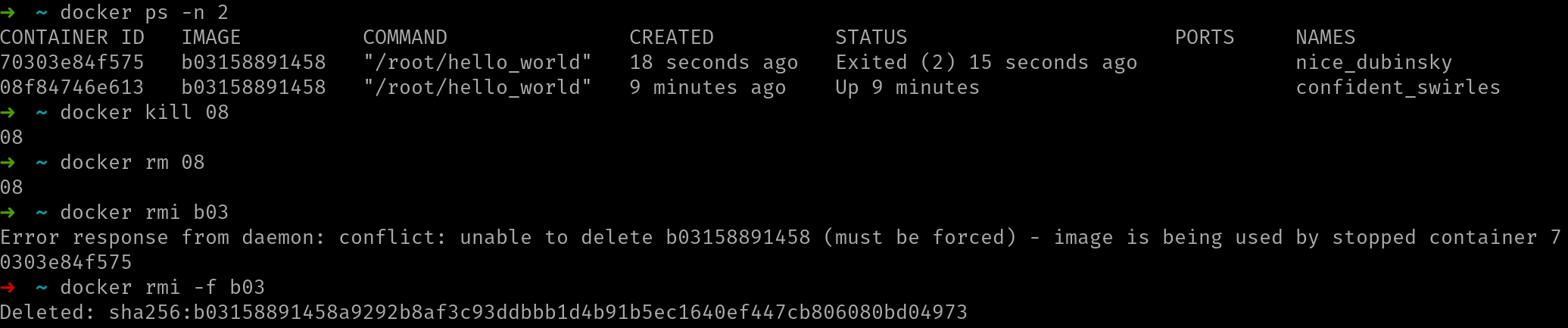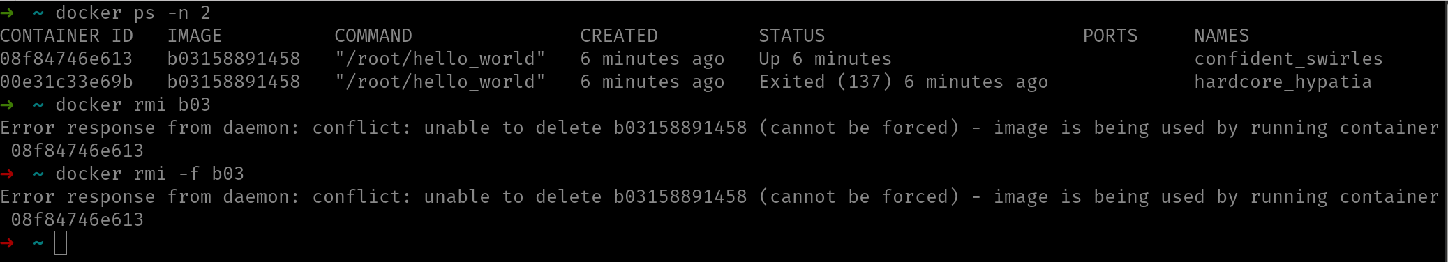 Observa que puedes usar docker rmi -f ¡incluso si hay un contenedor en marcha!