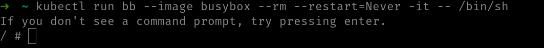 kubectl run bb --image busybox --rm --restart=Never -it -- /bin/sh