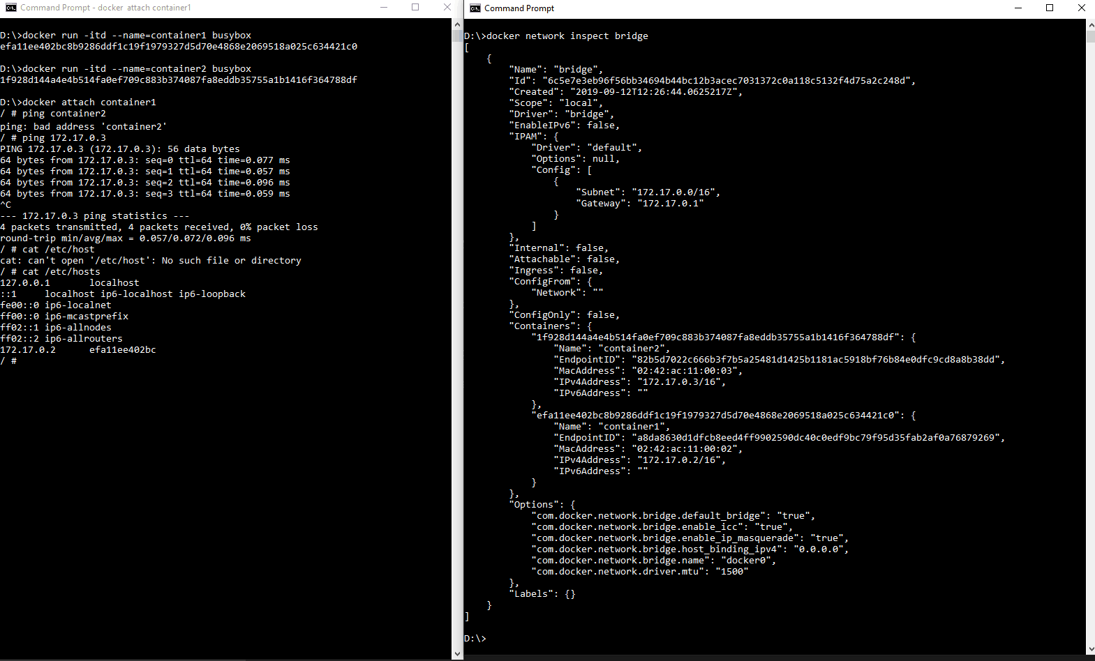 Las redes bridge están aisladas unas de otras y su limitación principal es que todos los contenedores deben ejecutarse en la misma máquina. Cada contenedor obtiene su propia IP dentro de la red y espacio de puertos.