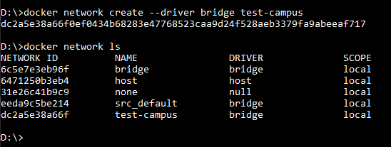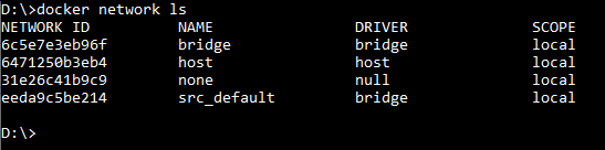 Te presento al comando docker network ls. Este te listará todas las redes de Docker que tengas en tu máquina, así como su tipo: