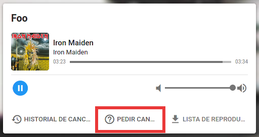 Se se habilita la opción Pedidos de canciones en el panel de administración de la estación, en su página pública, aparecerá un botón de Pedir canción.