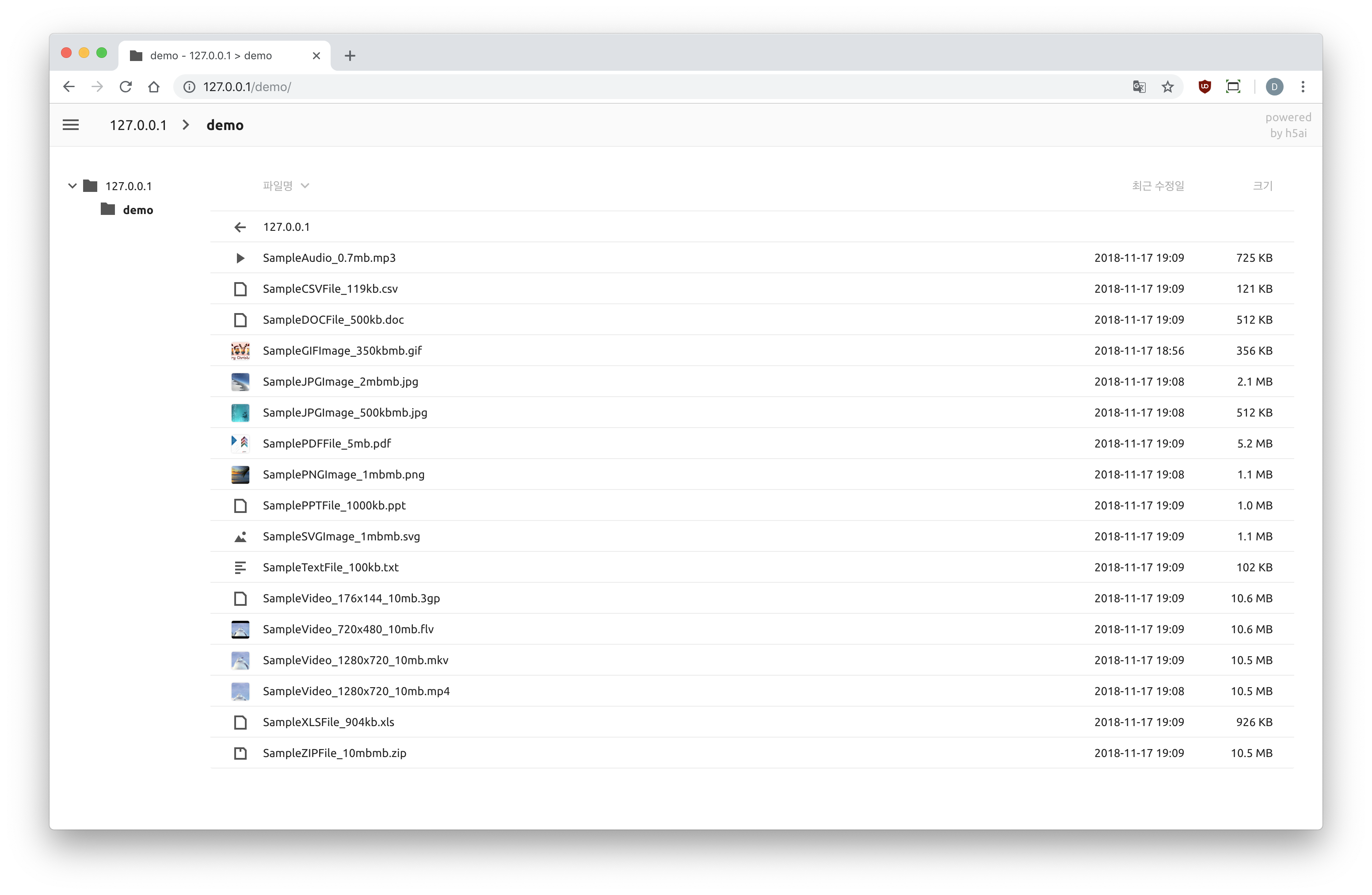 Cuando arranque el contenedor, podremos meter lo que queramos en el directorio data y h5ai lo mostrará.