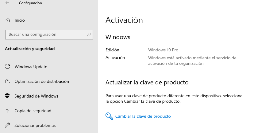 Podemos verificarlo desde Configuración → Actualización y seguridad → Activación: